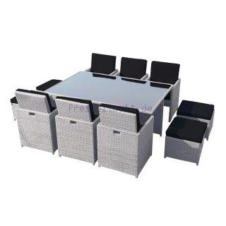 - Alle Stühle finden unter dem Tisch Platz, so dass Sie eine Sitzgruppe für 10 Personen haben, mit bester Raumausnutzung