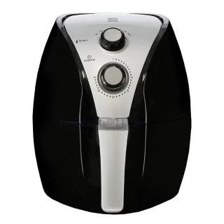 Die Heißluftfritteuse frittiert Pommes, Gemüse und Snacks schnell und fettfrei. Die maximale Temperatur beträgt 200° C, Leistung 1300 Watt, Maße: 25 x 28,5 x 31 cm.