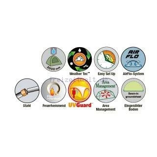 Kabelschlitze ist die Führung von Elektrokabeln möglich. Das Zelt hat 2 Eingänge am Außenzelt,