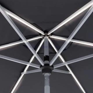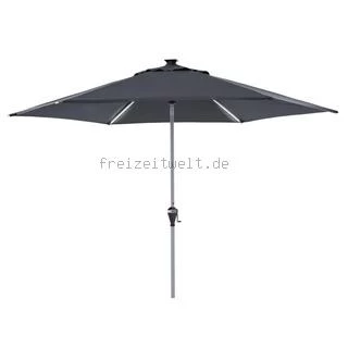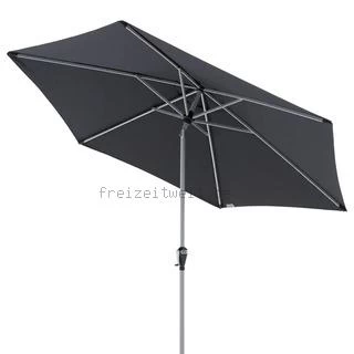 Moderner Kurbelschirm mit Auto-Knickvorrichtung. Mast aus pulverbeschichtetem Aluminium und einfach zu bedienender Design Kurbel. Die komfortable „Auto-Tilt“ – Funktion ermöglicht ein automatisches Neigen des Schirms, durch einfaches Weiterdrehen der Kurbel. Der Bezug ist aus wetterfestem Polyestergewebe mit hoher Lichtechtheit und einem UV-Schutz von 50+. Zusätzlich ist dieser abnehmbar und waschbar.