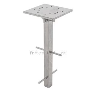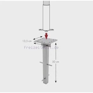 Es wird der untere Teil (Bodenanker) einfach in ein Fundament (ca. H50 cm x B50 cm x T60 cm) einbetoniert. Der Sonnenschirm direkt auf dem Bodenanker verschraubt. Es wird keine extra Adapterplatte für die Montage benötigt. Sie können den Sonnenschirm kinderleicht durch das Lösen der 4 Schrauben am Bodenanker demontieren und veräumen.