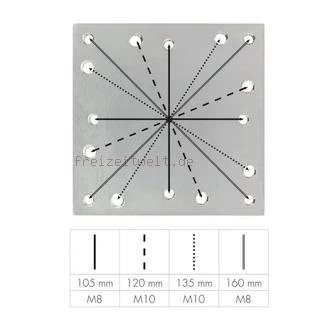 - Achsabstand Lochung: ca. 10,5 cm, 12 cm, 13,5 cm und 16 cm