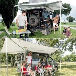 zahlreiche Fiamma Halterungen - Markisentuch als hellgrauem Polyester, von erhöhter Beständigkeit: schmutzabweisend und faltenfrei
