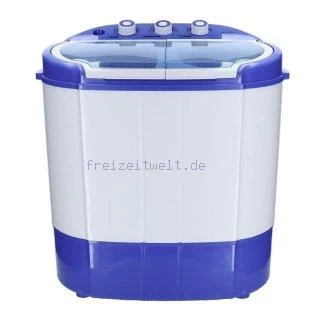 Füllen Sie die Trommel der Waschmaschine mit Wäsche, Wasser und Waschmittel und das Gerät erledigt den Rest. Zudem ist sie mit einer Schleuderfunktion ausgerüstet, so dass die Wäsche in Kürze handtuchtrocken ist. Sie können bis zu 3,5 kg Wäschge (trocken) einfüllen. Sie besitzt drei Waschstufen (Fein, Normal, Spülen) und läuft mit 220/240 V mit einer Leistung von 250/120 Watt, Maße: 59 x 38 x 61 cm.