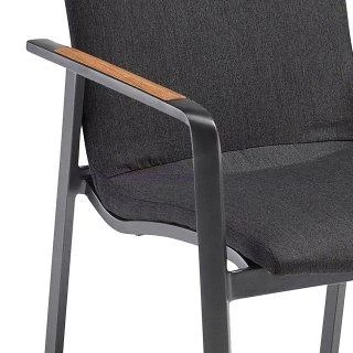 Ein eleganter Stapelsessel der hochwertiges Aluminium, zertifiziertes FSC-Teakholz und Sunbrella verbindet. Max. Belastung 120 kg.