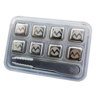 Kühlwürfel für Freunde des unverfäschten Geschmacks, keine Verwässerung, 4 Std. in Gefriertruhe, dann einsatzfähig, für Einsatz im Glas, inkl. Zange, Edelstahl 18/8, 2,4 cm.