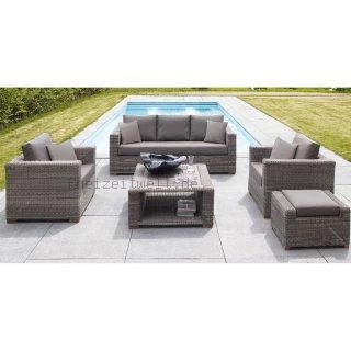 Farbe grey wash mit weißen Kissen oder light brown mit taupefarbenen Kissen, wetterbeständig.