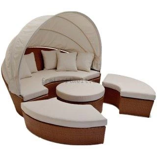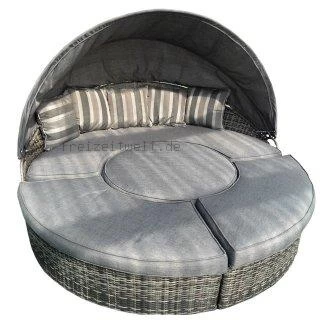Sonneninsel und Lounge, Original – Lizenzware, zum Kuscheln, Schlafen und Wohnen. Hochwertiges Geflecht aus Polyethylen kunstvoll aufgeflochten auf stabilem Aluträgergestell. Nicht zu vergleichen mit Billignachbauten. Mit einem Handgriff sind auch schnell 8 – 12 Sitzplätze geschaffen. Ca. 220 x 150 cm. Alle Kissen mit Reißverschluss.