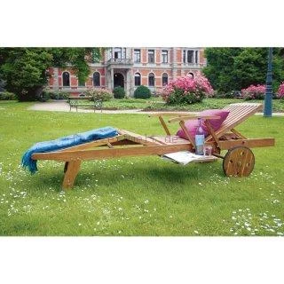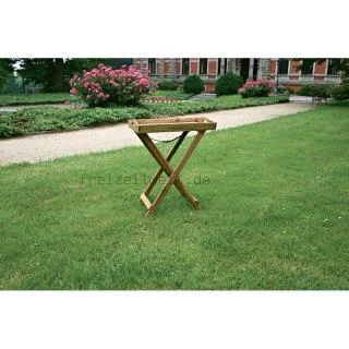 Aus wetterresistentem Akazienholz, das von der Oberflächenfarbe Teakholz sehr ähnelt (etwas rötlicher).