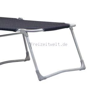 Robuste, komfortable Dreibeinliege mit Metallgelenken und Hartaluminiumrahmen. Die höhere Liegeposition erleichtert das Hinlegen und Aufstehen enorm. Die extra breite Liegefläche von 200 x 70 cm bietet einen optimalen Liegekomfort.